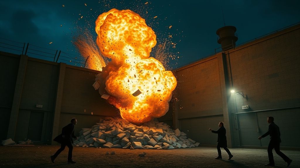 ” نعم اتفقنا .. ” قالها فرنناندو وخرج بسرعة شديدة للخارج ..فتوجَّه آدم إلى المخزن، ونظر بداخله سريعًا، ثم ابتسم ابتسامة كبيرة وغادر سريعًا إلى باحة السجن .. واتجه إلى جهة السور التي وضع عليه علامة x من قبل، وبأسفل تلك العلامة وضع 4 أجولة دقيق بعضها فوق بعضٍ بطريقه هندسية .. ثم قام بوضع قنبلةٍ مولتوف صغيرة بينها صنعها من خليط الكحول والأسيتون ومزيل طلاء الأظفار وأمسك قطعة القماش التي بالزجاجة وقام بإشعالها وهو قلبه يدق بشدة .. فتلك اللحظة الفارقة هي التي ستجعله يقول أكون أو لا أكون .. وتمنى أن تسير حسابته كما خطط لها من قبل .. نظر إلى الفتيل وهو يبدأ بالاشتعال، فتراجع مُبتعدًا بسرعة إلى منتصف باحة السجن، وشعر بوجود أشخاص خلفه، فنظر سريعًا وراءه، فوجد شخصين يقتربان من بسرعة تحت جُنح الظلام .. فشعر بالارتياب واتخذ وضعًا دفاعيًّا، وانتوى أن يصرع بلكماته أي شخص يتقدم جهته أيًّا كان .. فاقتربوا منه وهمَّ بطبيعة الحال أن يلكمهم، لكن تراجع في آخر لحظة عندما رآهم فرنناندو وجيرمينو ..فشعر بالارتياح فتحدث إليه فرنناندو سريعًا وهو قلق “لقد أتينا أيها الجرينجو .. فكيف سنُهرب من هنا الآن” فاكتفى آدم بالابتسام له، وأشار إلى أجولة الدقيق وقنبلة المولتوف التي تشتعل بسرعةٍ بينهم .. ثم فجأةً حدث انفجار كبير صاحبَه صوتٌ ضخم .. أصاب جميع من سمعه بالخوف والتوتُّر ثم فجأةً سقط جزءٌ كبير من الجدار وتحطم لفُتاتٍ بفعل الانفجار .. فنظر فرنناندو إلى آدم فرحًا وهو مندهش .. “ما هذا؟ أجولة الدقيق انفجرت .. كيف فعلت ذلك .. والسور تحطم .. هيا بنا نهرب الآن .. إنها فرصتنا .. ” .. بدا على آدم القلق والارتباك، ولكنه حاول تهدئة نفسه وهو يحدث فرنناندو .. “انتظر .. لن نهرب الآن .. ” .. فنظر إليه غاضبًا .. “ماذا تقول أيها الجرينجو .. إنها فرصتنا الآن .. يجب أن نهرب قبل يفطن إلينا أحد” .. ظل آدم ينظر إلى الفتحة الضخمة التي صنعها انفجار أجولة الدقيق في السور وهو يخبره أن ينتظر ليس الآن .. مرت لحظاتٌ قليلة، ثم سمعا ضجيج صوت الإنذار يُدوِّي في أنحاء السجن .. وبدأت أصوات المساجين وهرجهم ومرجهم بداخل السجن تعلو.. فشعر جيرمينو وفرنناندو بالهلع وأمسك بيد آدم “أرأيت .. إن جوزبير ورجاله سوف يكونون هنا خلال دقائق .. يجب أن نعود إلى داخل السجن الآن .. إن عملية هربنا فشلت بسببك أيها الأحمق ..” .. ابتسم آدم بثقة وهو ينظر إلى الأرض .. “لا تقلق .. إن عملية هروبنا بدأت الآن ..” .